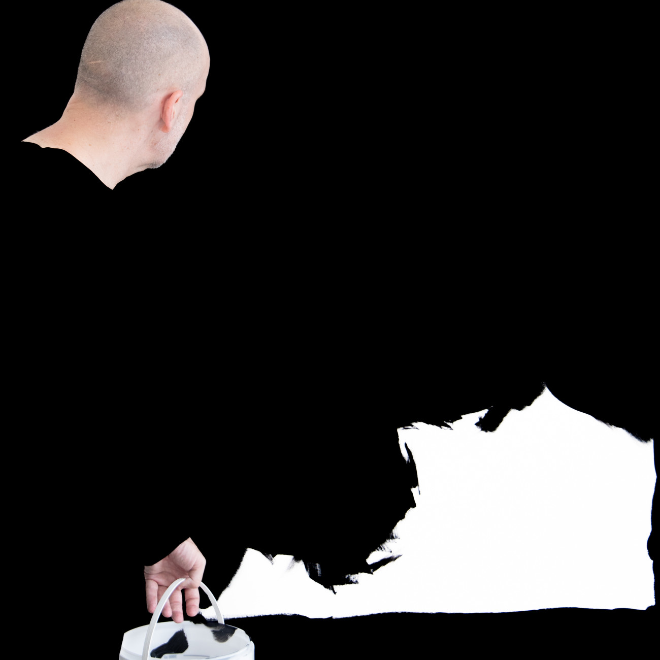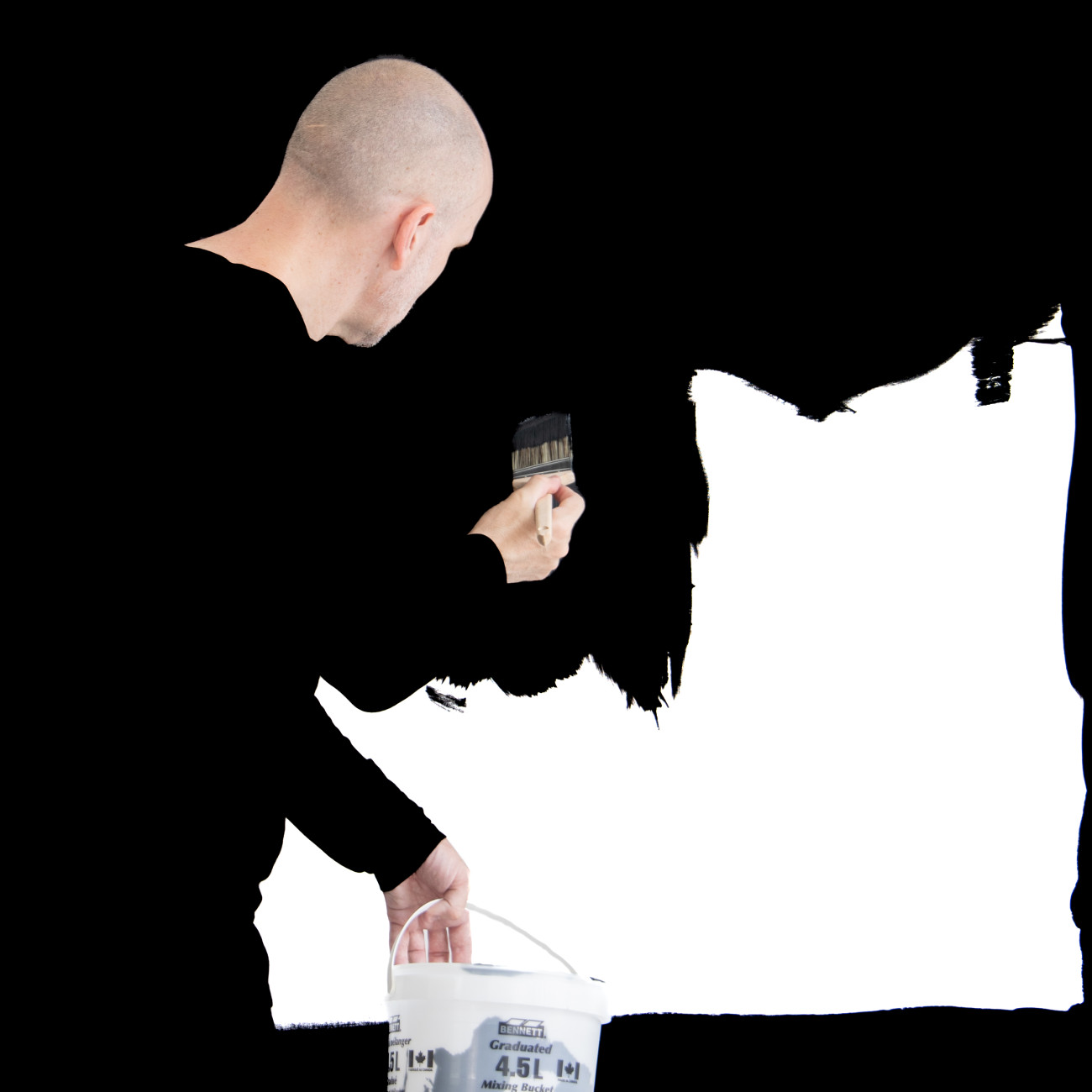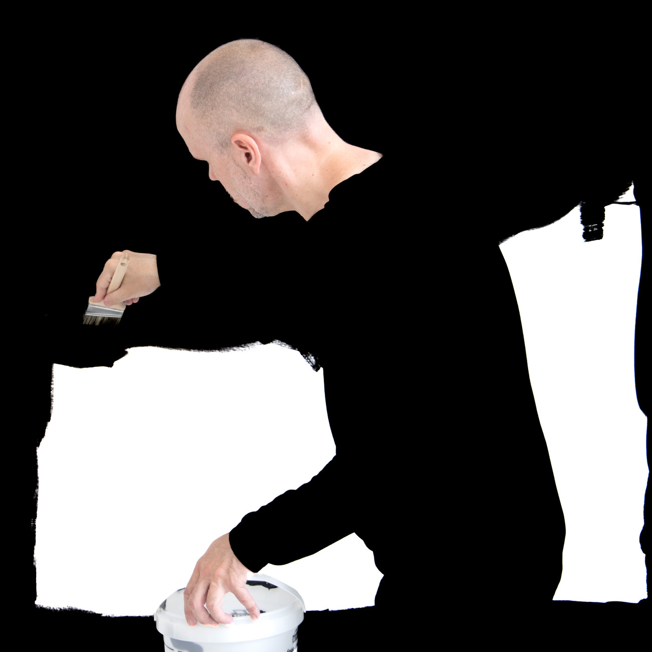 Steve Giasson. Performance invisible n° 284 (S'abstraire (un peu)). Reenactment de Roy Grayson. Painting Book. 1972. Performeur : Steve Giasson. Crédit photographique : Martin Vinette. Retouches photographiques : Charles-Étienne Lebrun. Galerie B-312. 3 août 2025.