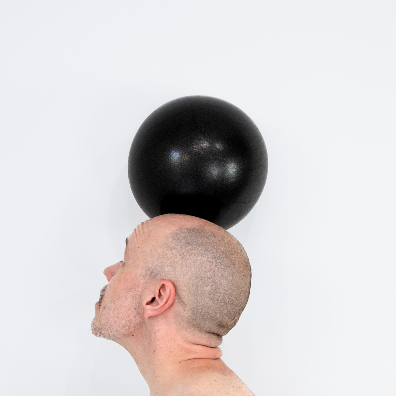 Steve Giasson. Performance invisible n° 271 (Faire son numéro). Reenactment de Tokio Maruyama. Photographic fragments from a short action. 2021. Performeur : Steve Giasson. Crédit photographique : Martin Vinette. Retouches photographiques : Charles-Étienne Lebrun. Galerie B-312. 2 août 2025.